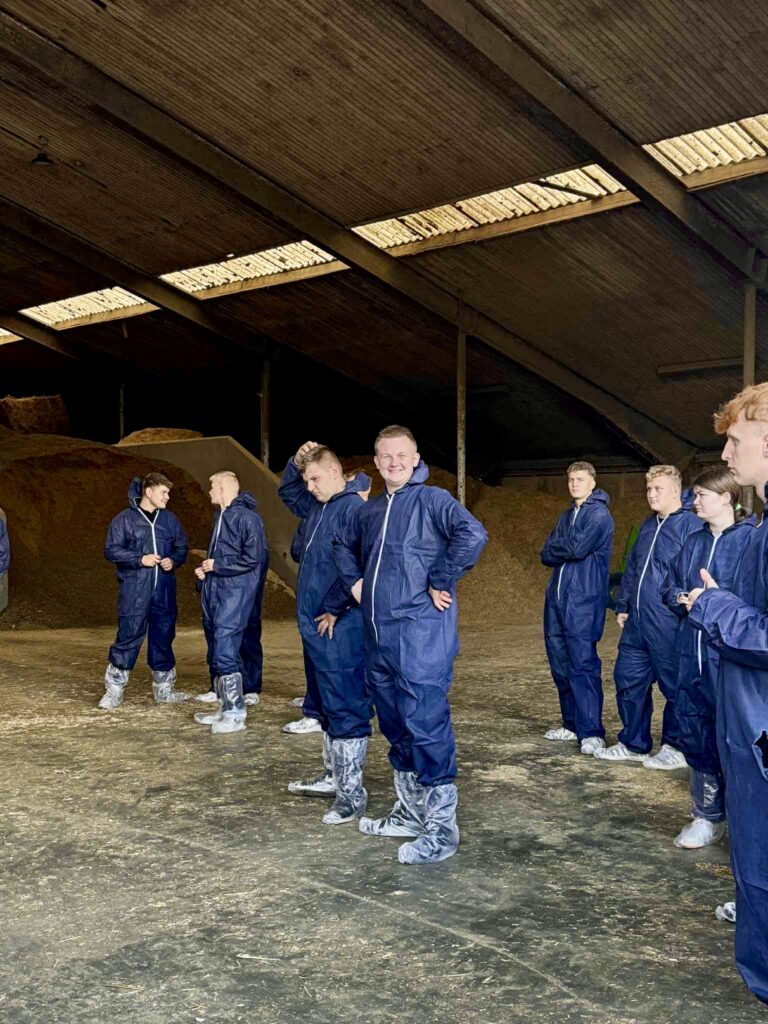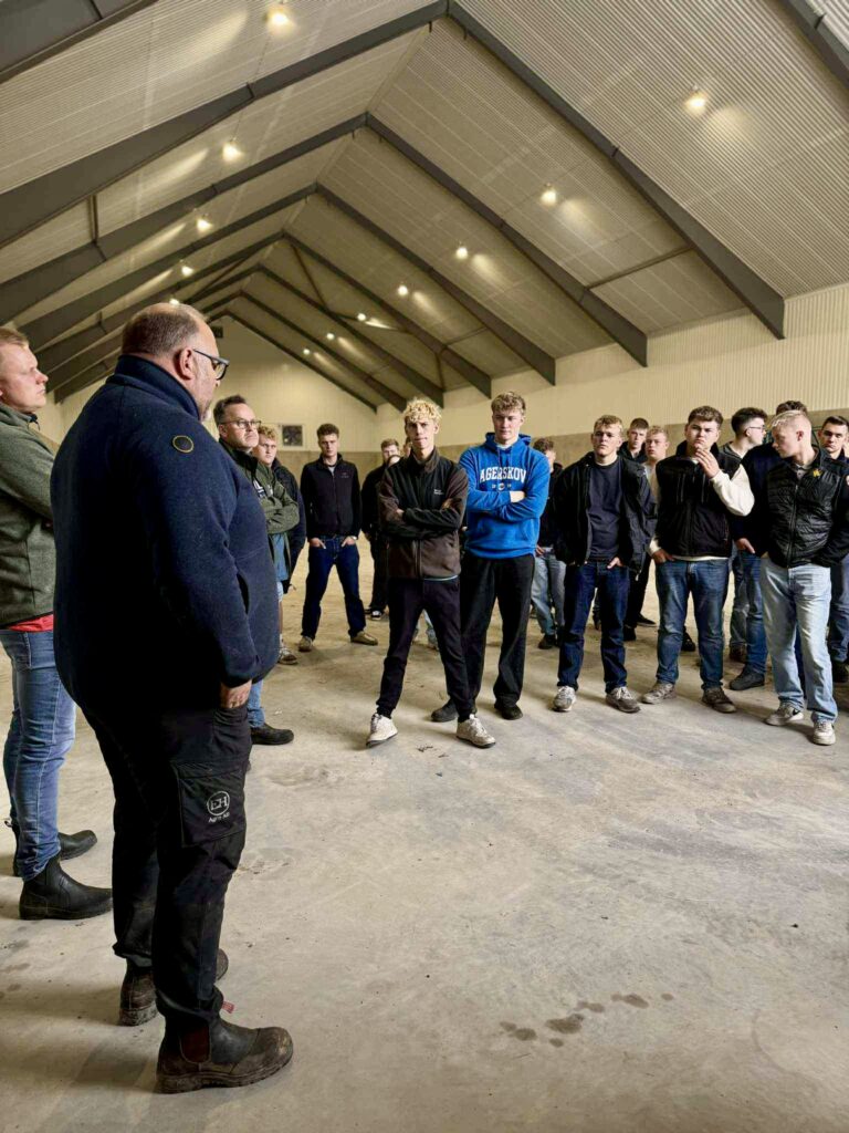 Et af højdepunkterne på turen var besøget på Assenrup Hovedgård. Her fik eleverne indblik i en moderne kvægstald med forsøgskvæg. Driftsleder Kjeld samarbejder med Novonesis, hvor der forskes i køernes fordøjelse. Hver anden uge bliver køerne nemlig “tømt”, så forskerne kan undersøge indholdet nærmere. Det gav eleverne et spændende indblik i, hvordan forskning og praksis går hånd i hånd i moderne landbrug.