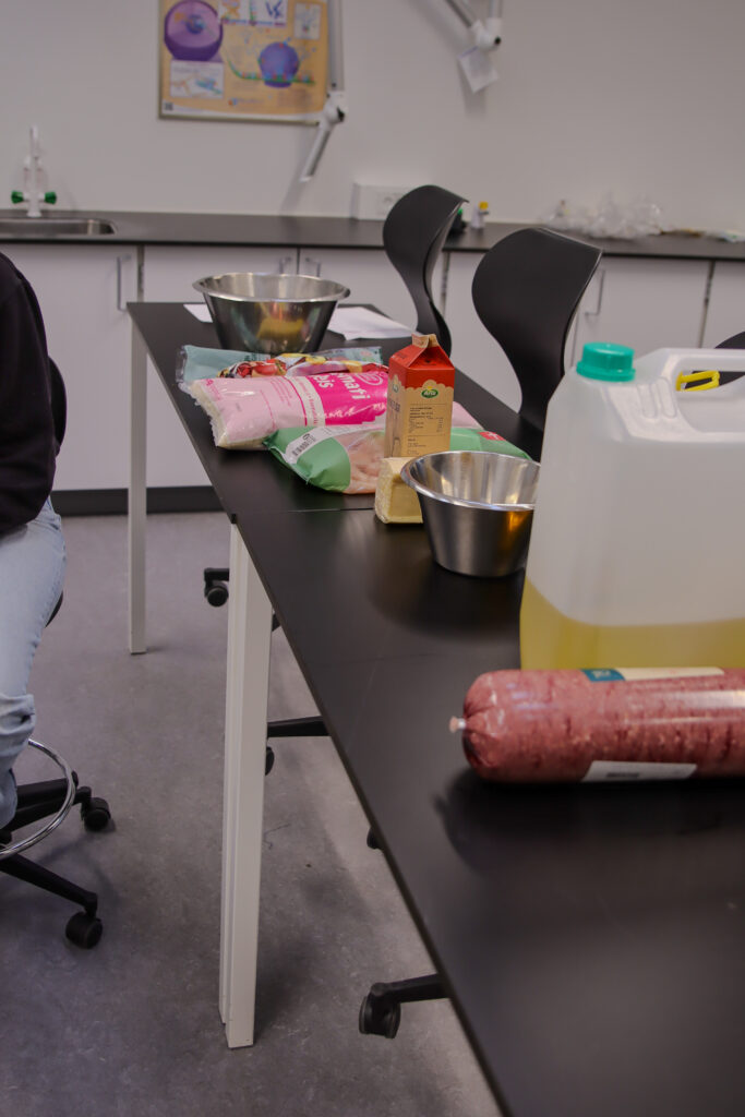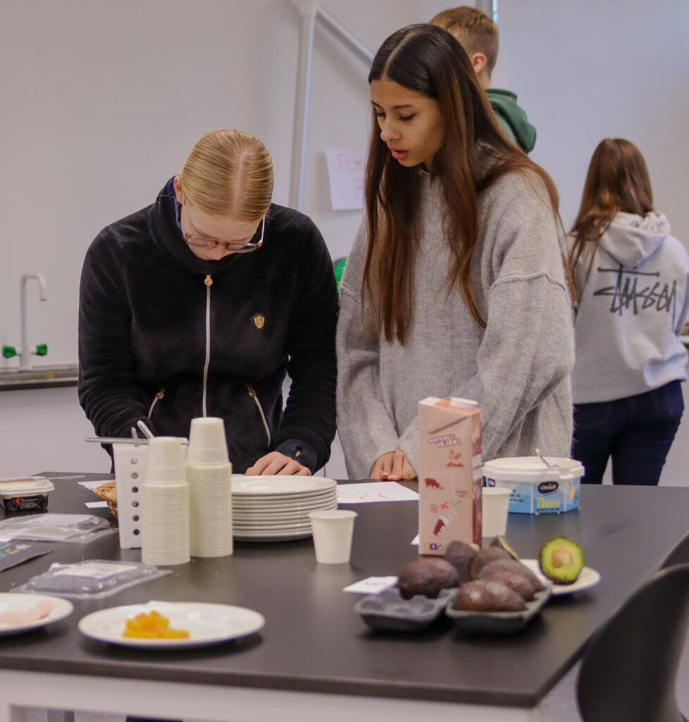 En stor del af undervisningen handlede om, hvordan madvaner spiller en vigtig rolle i den samlede klimabelastning. Eleverne lærte om forskelle i CO₂-udledning mellem forskellige fødevarer og diskuterede, hvilke alternativer der kan være mere bæredygtige i hverdagen. Dette dannede grundlaget for et praksisforløb i skolens laboratorium, hvor teori og handling blev koblet sammen.
