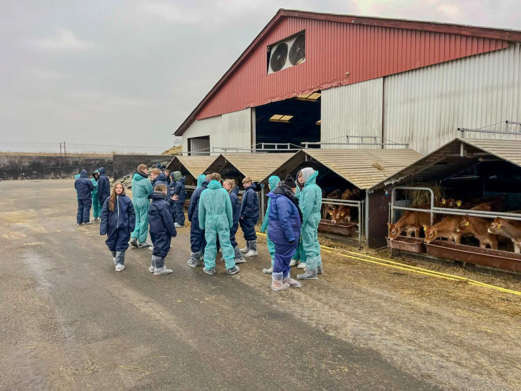 Torsdag bød på et spændende besøg, hvor eleverne blandt andet fik mulighed for at se jerseykøer. Det var en kold fornøjelse, hvorfor køkkenets medbragte varme kakao gjorde underværker, og gav ny energi, inden turen gik videre mod Odense.