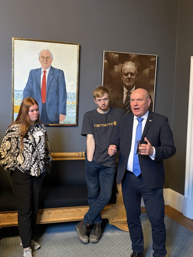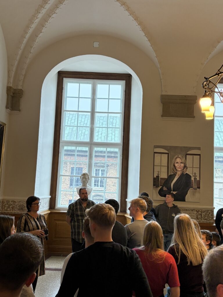 På Christiansborg besøgte holdet Folketinget, hvor de fik en rundvisning og hørte om det politiske arbejde. Eleverne mødte Folketingets formand, Søren Gade, samt folketingsmedlem Anni Matthiesen, som fortalte om deres arbejde og vejen ind i politik. Der var mulighed for at stille spørgsmål, og samtalen gav et spændende indblik i hverdagen, som politiker og i de demokratiske processer.