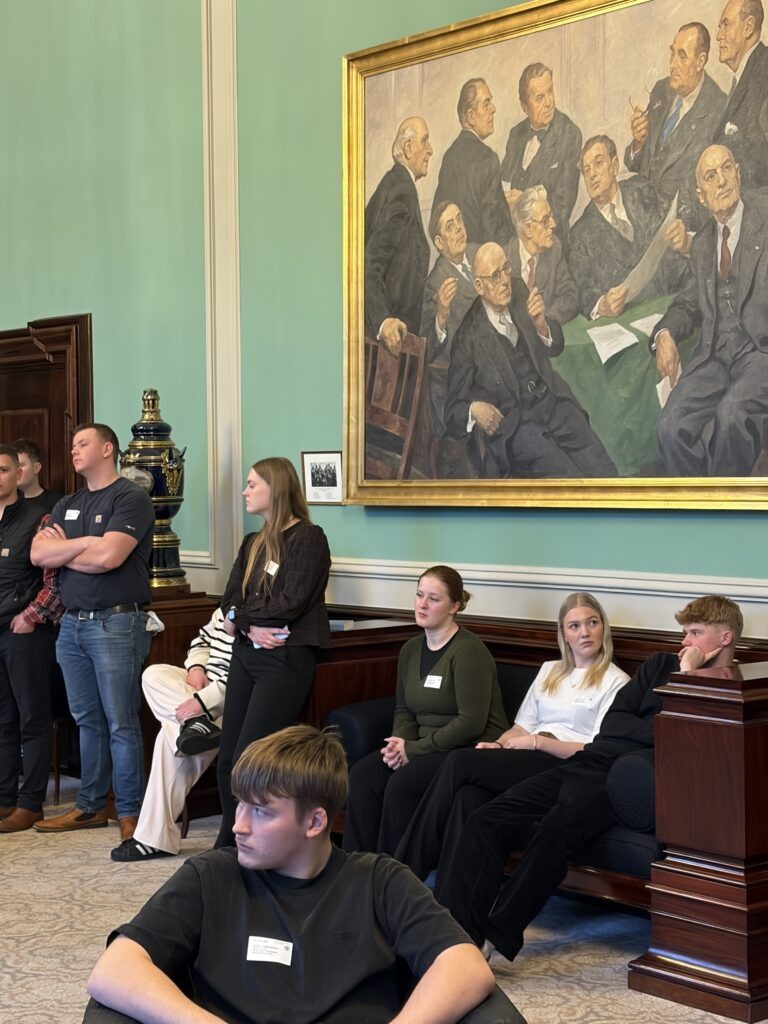Et af turens første stop var hos Landbrug & Fødevarer (L&F). Her fik eleverne indblik i, hvordan en interesseorganisation arbejder for at varetage landbrugets og fødevareerhvervets interesser politisk og i offentligheden. Oplægget gav en god forståelse for samspillet mellem erhverv, politik og samfund, og hvordan beslutninger påvirker både producenter og forbrugere.