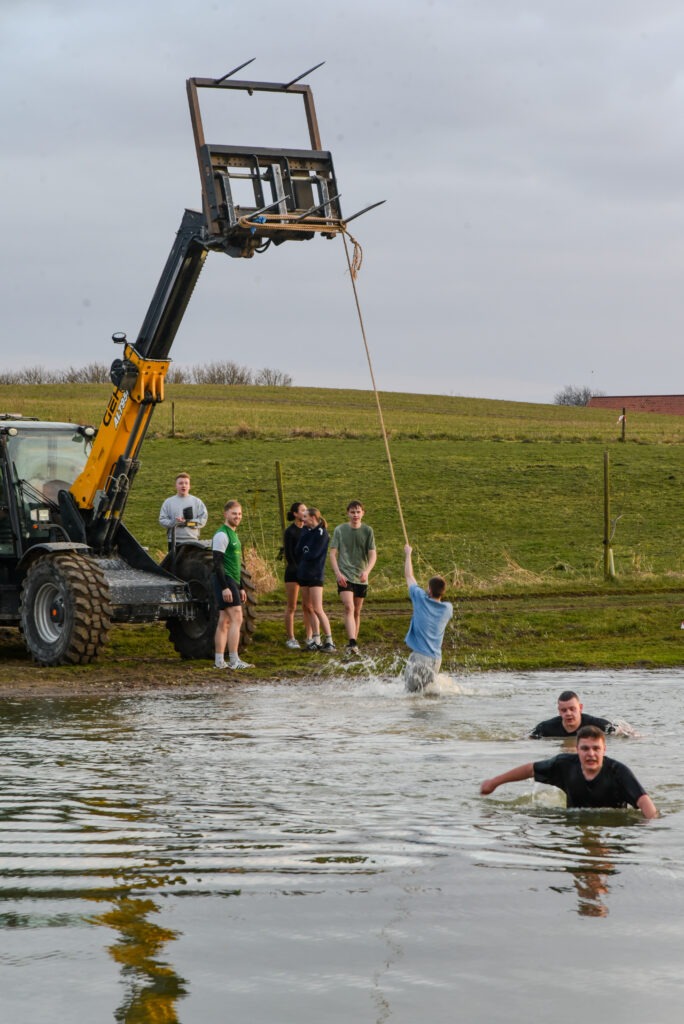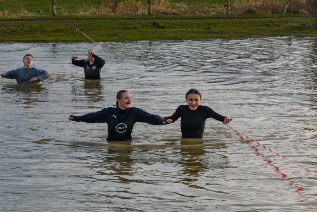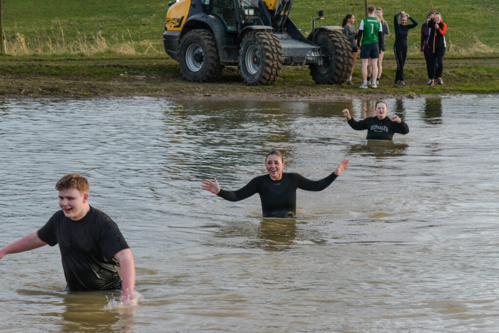 Omkring 30 elever deltog i årets mudrace, og de leverede en imponerende indsats. På trods af de udfordrende forhold og det kolde vand blev alle ved og gennemførte banen med stor energi og godt humør.
